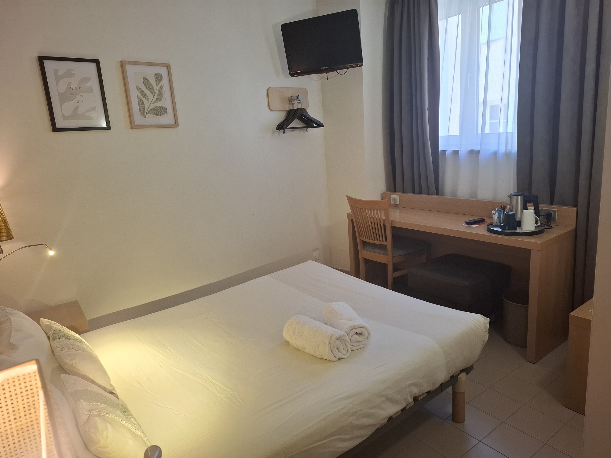 They have a desk with USB socket, a flat-screen TV and a courtesy tray with an electric kettle.