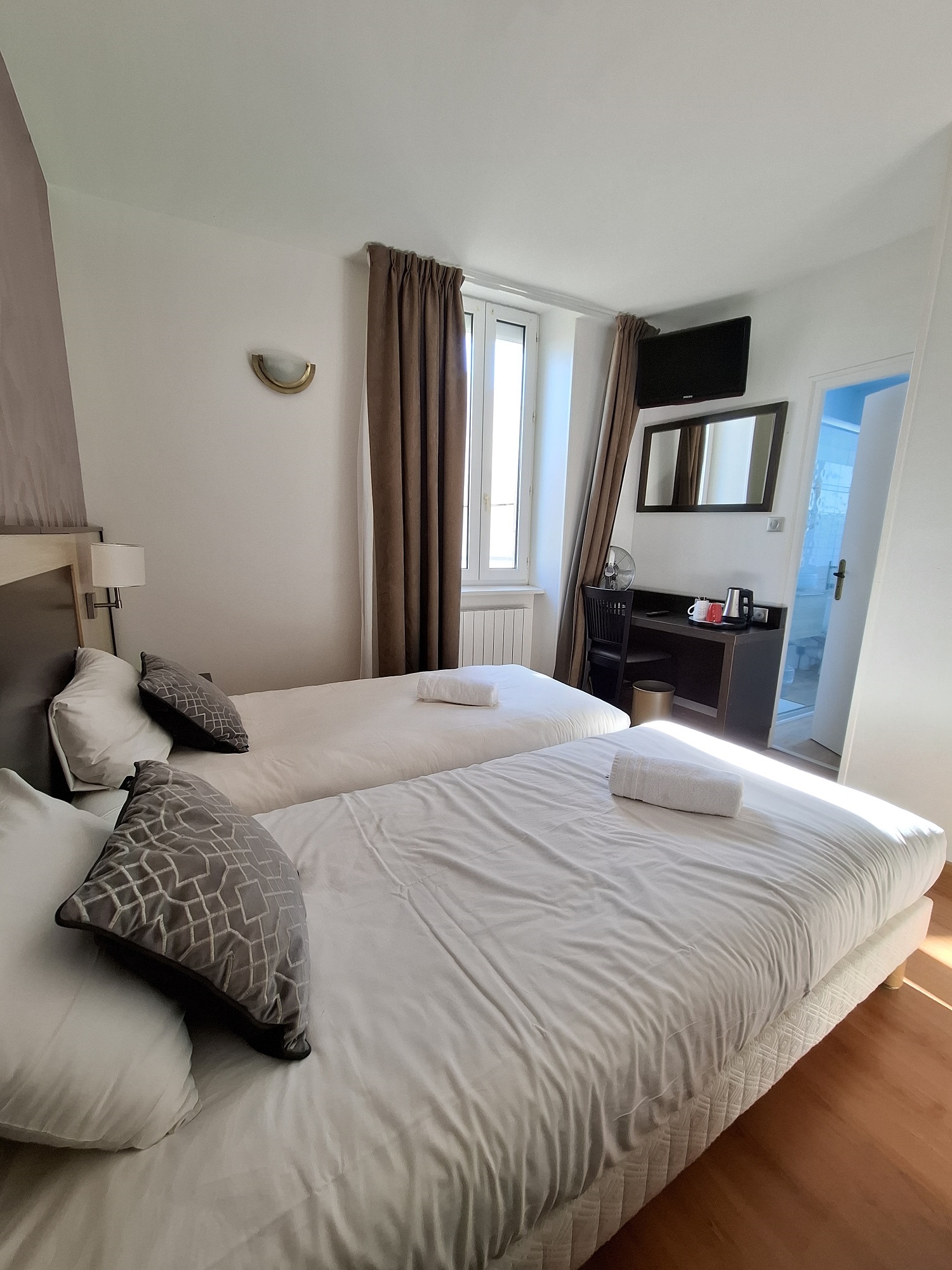 They have a desk with USB socket, a flat-screen TV and a courtesy tray with an electric kettle.